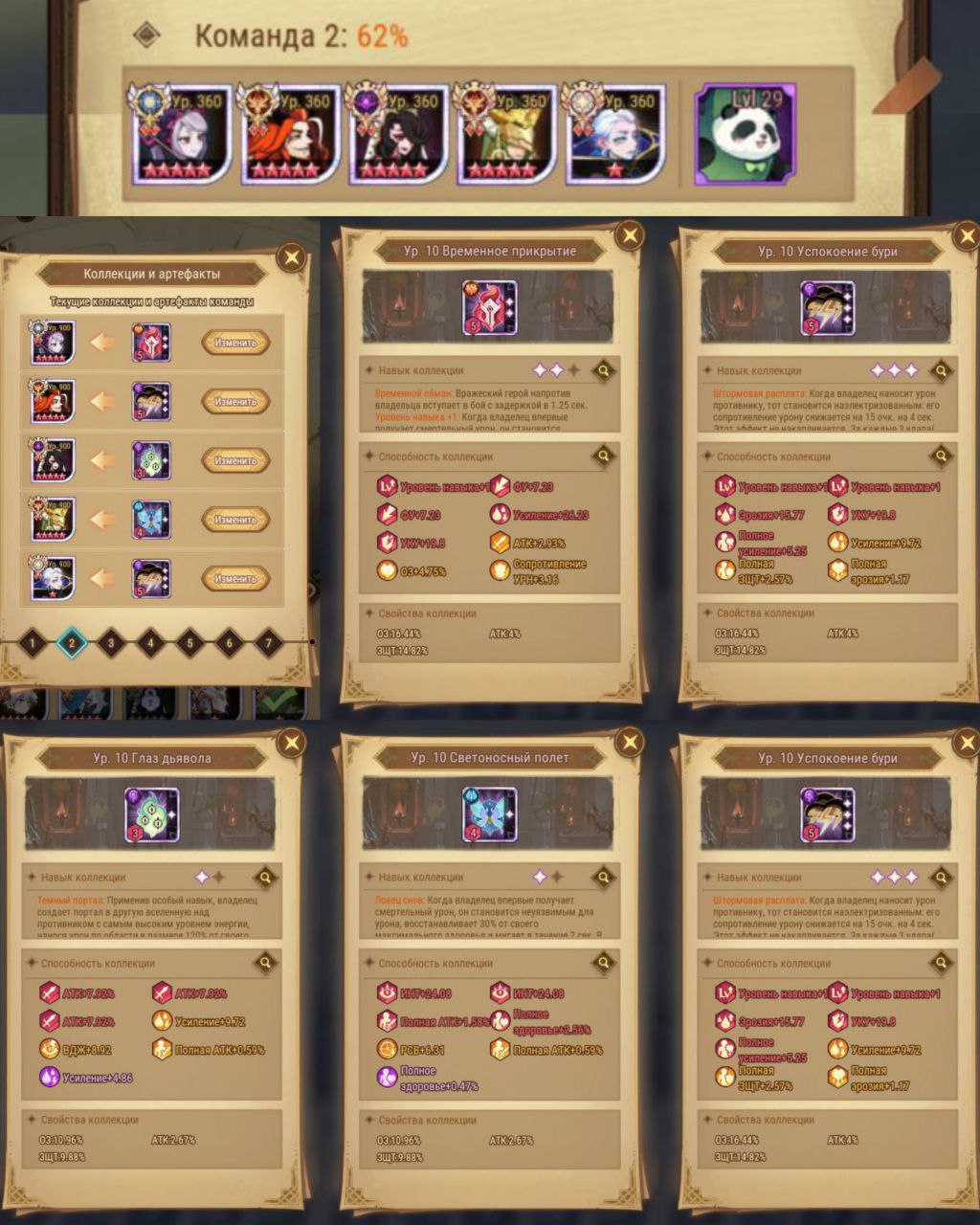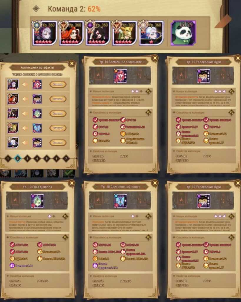 - для Зохры идеально заходит туча 3 лвла. Она дает Зохре моментально бафф 21% урона и 60% атаки. Это обязательная кола, статы вторичны. Лучший стат для Зохры — МУ, затем КДА/АТК.