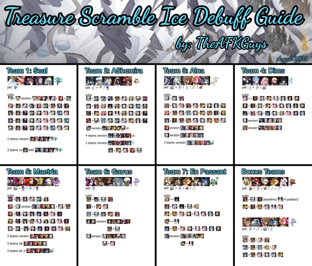 Оптимальные построения для охоты за сокровищами. Эффективность построения во многом определяется прокачкой героев. Рекомендуется использовать персонажей с именными предметами и гравировкой не ниже 30 уровня. Уровень зверей также играет важную роль — порой зверь с более высоким уровнем оказывается полезнее, чем рекомендованный в гайде, но менее прокачанный.