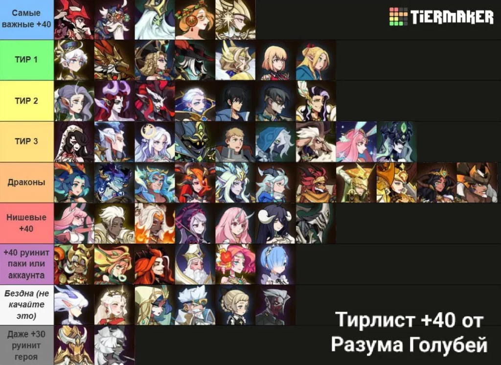 Данный тирлист не является обязательным списком героев, которых необходимо качать на +40. Это скорее топ +40 ИП по силе и необходимости для героя.