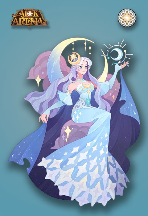 Селена — Звезда успокоения — это герой фракции Небесные, класс Маг, тип Интеллект. Она вышла в октябре 2025 года и позиционируется как гибридный дамагер с навыками поддержки: наносит урон, лечит союзников, баффает команду и накладывает мощные дебаффы.