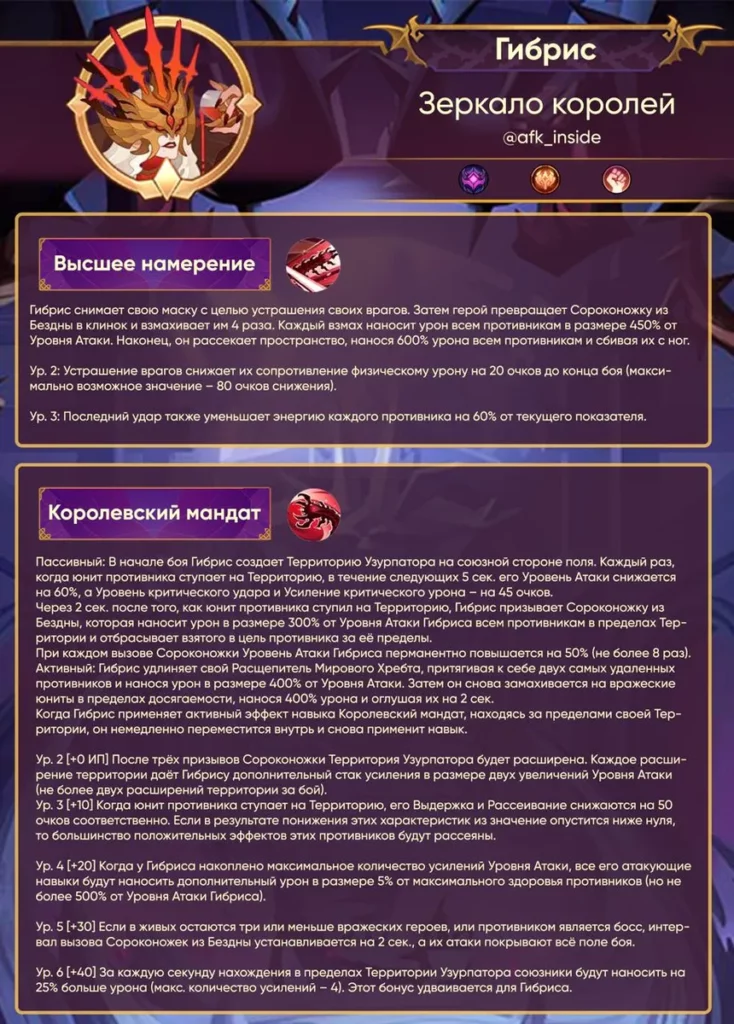 Главная » НовостиАнонс Гибриса – Зеркала королей Автор afkadmin На чтение 1 мин Просмотров 75 Опубликовано 16.04.2026Гибрис – Зеркало королей — пробужденный герой из фракции Демоны, атрибут Сила, класс Боец.НавыкиАрт