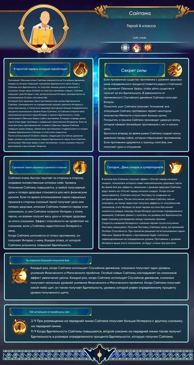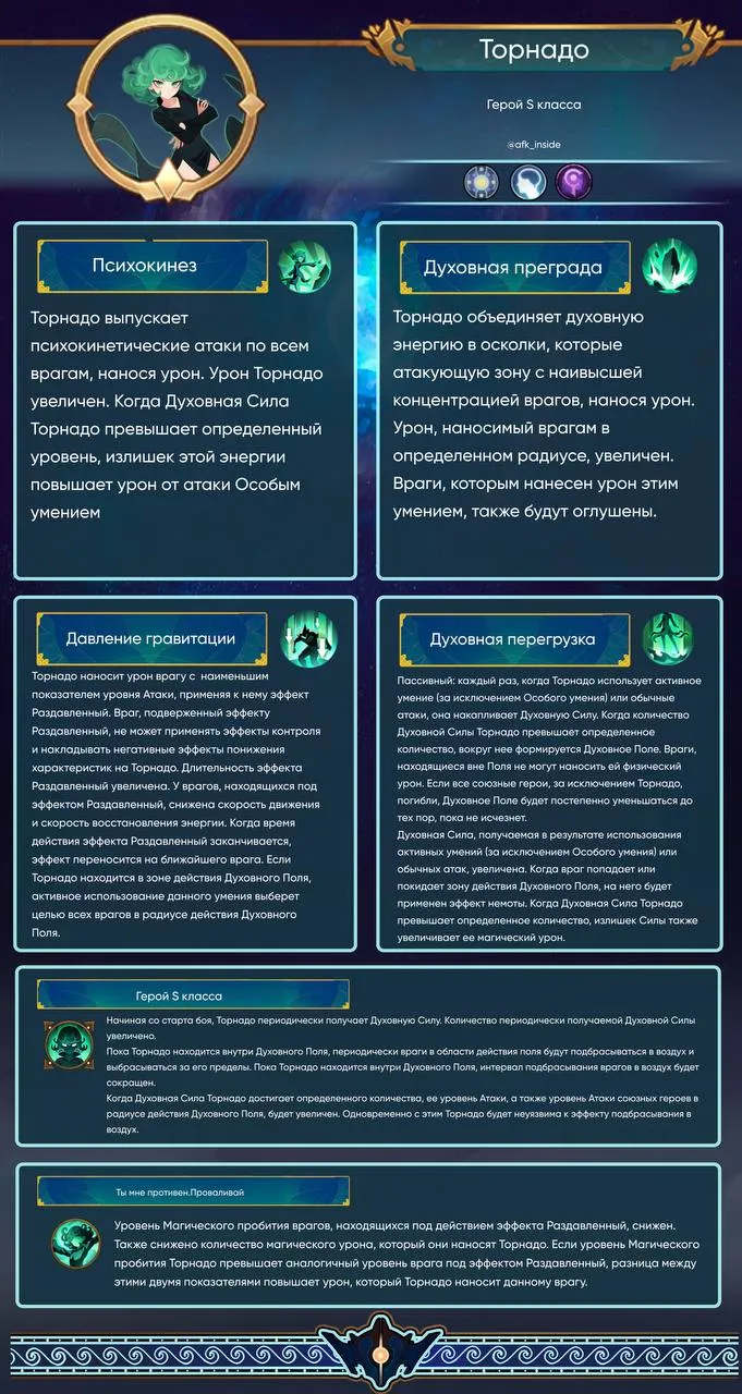 Главная » НовостиАнонс Торнадо и Сайтамы Новости Автор afkadmin На чтение 1 мин Просмотров 13 Опубликовано 27.12.2025Торнадо — из фракции Герои из Чужих Измерений, атрибут Интеллект, класс Маг.Сайтама — из фракции Герои из Чужих Измерений, атрибут Сила, класс Боец.НавыкиАрт