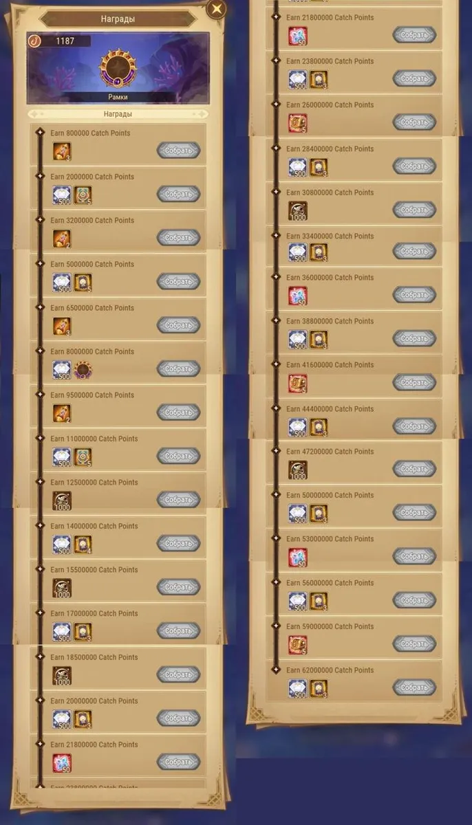 - За ловлю начисляются Очки улова, при достижении определенного кол-ва очков предоставляются награды, в том числе рамка годовщины