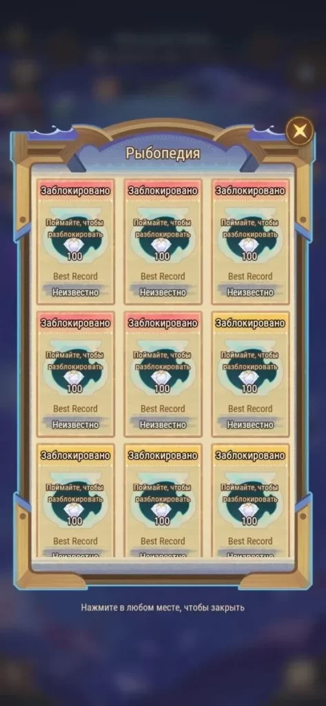 - За вылов каждого нового вида можно получить 100 алмазов