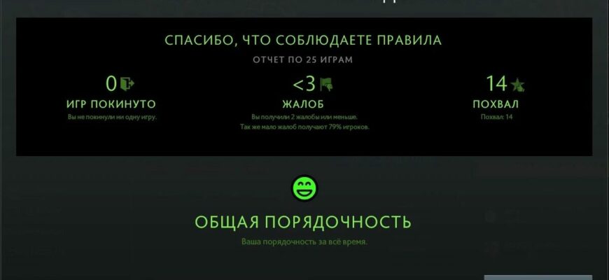 В Dota 2 всегда есть и было нечто такое, что волнует игроков куда сильнее, чем выбор героя или новый патч. Нет, речь не о том, кто купит первым «БКБ», а о том, кто окажется у вас в команде. Согласитесь, матч можно проиграть, но вот испорченный настрой от токсичного союзника запоминается куда более надолго. Именно здесь на сцену выходит порядочность в Дота 2 — загадочный, но крайне влиятельный показатель, который определяет, в какой компании вы проведёте ближайшие 40 минут.