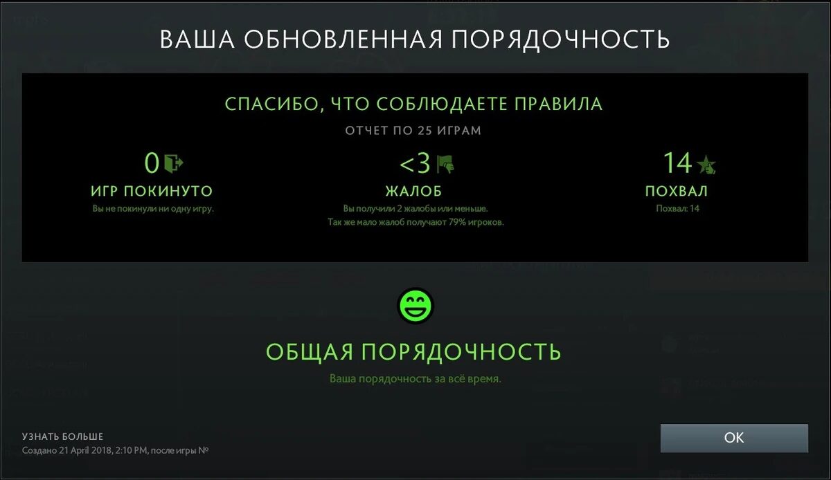 В далёком 2013 году компания Valve решила, что одной механики подбора соперников недостаточно. И ввела систему, которую назвали Behavior Score. Или по-нашему — порядочность. Казалось бы, что может быть проще: играешь себе, побеждаешь, проигрываешь. Однако, отныне в дело вступили не только киллы и «крипстат», но и то, как ты ведёшь себя среди живых людей.