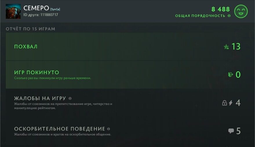 - Жалобы. Тут всё наоборот: репорт за токсичность или намеренный слив игры сильно ударит по цифрам.